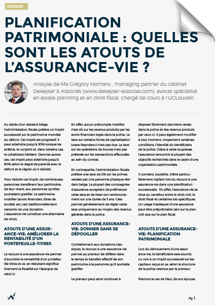 Planification patrimoniale: quelles sont les atouts de l'assurance-vie ? par Me Grégory Homans